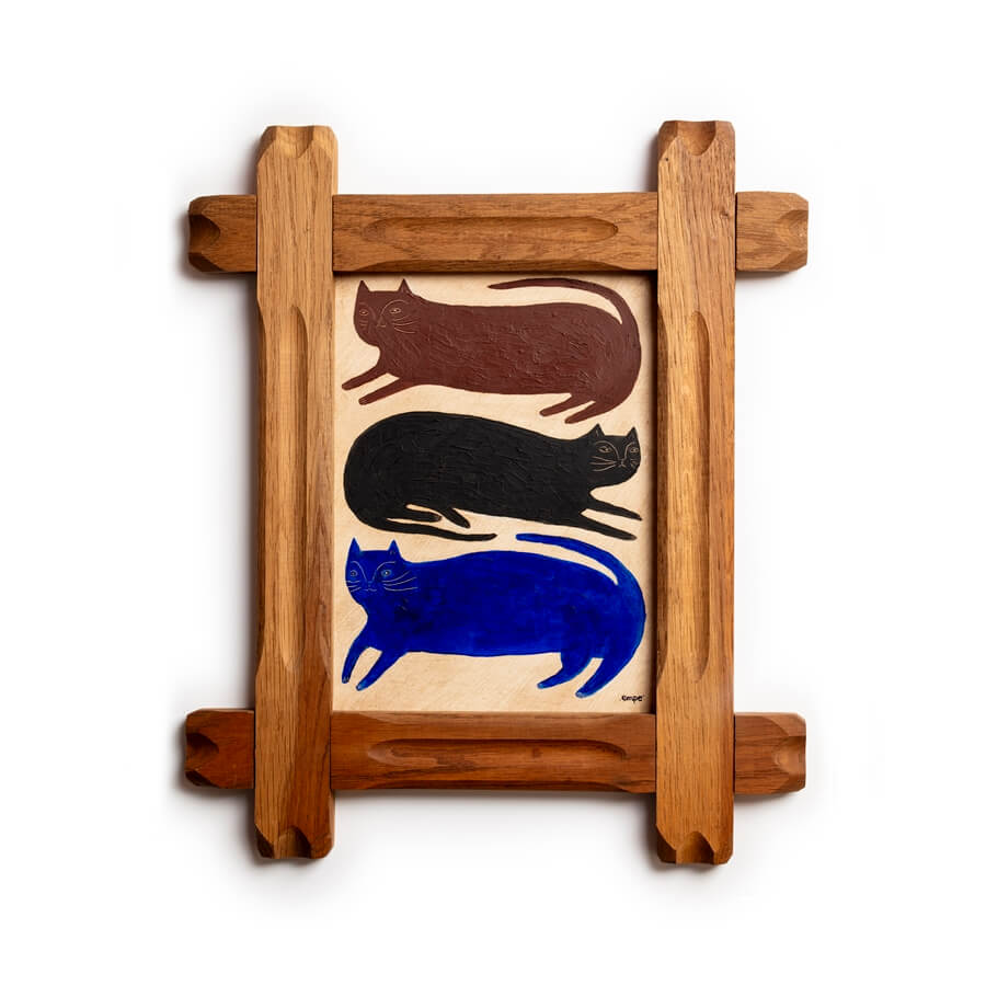 Oryginalny obraz „Trzy koty” namalowany w drewnianej desce, autorstwa Empe artstudio.