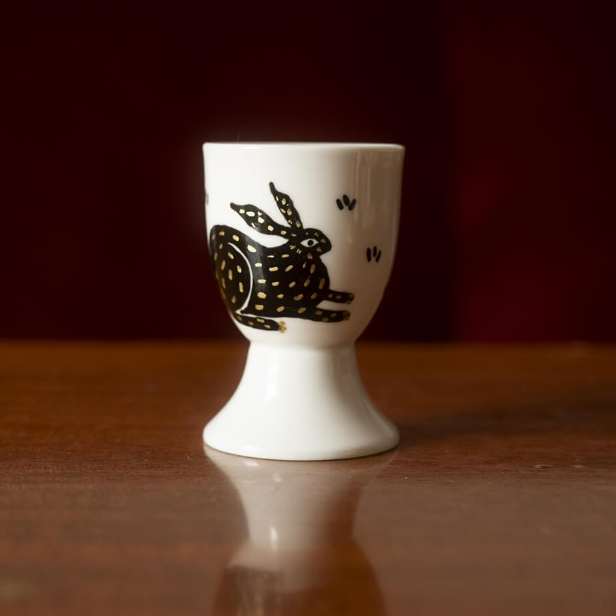 Podstawka z zającem stworzona była w duchu zero waste i upcykling – pochodzi z drugiej ręki. Kiedyś przez kogoś używana, później zapomniana, teraz ma szansę zaserwować Ci pyszne jajko! Kupując przedmioty od Empe dbasz o naszą planetę ♥