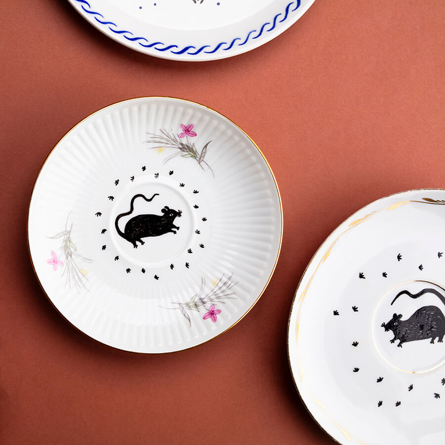 Talerz z myszką stworzony był w duchu zero waste i upcykling – pochodzi z drugiej ręki. Kiedyś przez kogoś używany, później zapomniany, teraz ma szansę stanowić unikatową dekorację na Twoją ścianę! Kupując przedmioty od Empe dbasz o naszą planetę ♥
