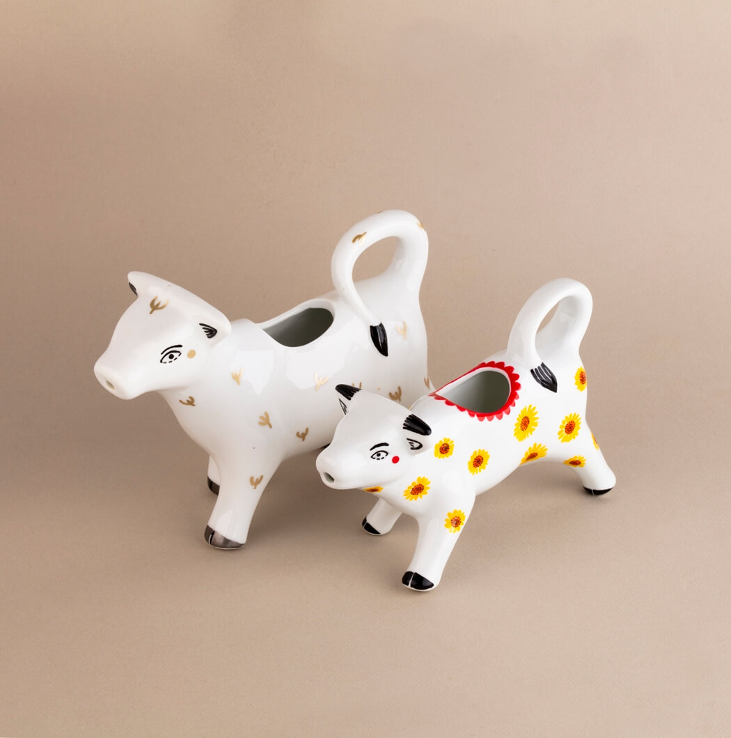 Unikatowy ceramiczny wazon w postaci krowy, ręcznie malowany.